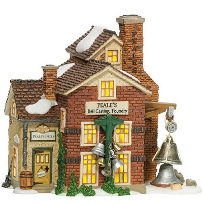 Notes on Dept. 56® Village Collections from Family Christmas OnlineTMThis is a small collection of personal observations about Department 56® village collections, including many that I had to leave out of the "A Brief History of Christmas Villages" article for reasons of space. I am not a Dept. 56® collector, simply a person who admires many of their products and owns a few that I use with my own Christmas villages and seasonal railroads. So you may very well know quite a bit more about Dept. 56® and their products than I do. So please, feel free to send me any corrections or additions, and I'll try to update this page in a timely manner. In 1976, Department 56 introduced with six ceramic buildings that caught holiday decorators' attention, revived Christmas villages, and started an industry. The church from Dept. 56's original 1976 Snow Village® is shown to the right. If you want to see a photo of the entire set on the Dept. 56 web page, click here By now families that used to set out those glittered cardboard Christmas houses or tinplate train sets were leaving them in the attic, for many reasons, including lack of space. But you could squeeze a Dept. 56® display in just about anwyere, and it wasn't long before many folks were doing just that. Dept. 56® GrowsSince 1976, Dept. 56 has constantly increased the quality and variety of their offerings. The most popular series and collections include the following.