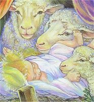 The paintings above are by the Scott Church Creative group. While I classified these paintings as folk or primitive, the vast majority of Scott's work is more trendy. You've probably seen it as gift wrap, customized Christmas cards, and a hundred other places, since the "Group" licenses Scott's images to dozens of such manufacturers and printers. To look at some of Scott's patterns for Christmas-themed project, click here. Devotional ArtReligious or Christmas themes also find their way to this market. In my one-day shopping spree last year, I picked up several devotional paintings by one artist.