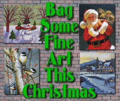 ConclusionNeedless to say, almost none of the works shown on this page will be available this year. But other works by these and other first-tier artists will be. If we've given you some ideas that will make your holiday decorating or gift-giving a little brighter, we've done what we set out to do. Also if you wind up incorporating any Christmas-themed gift bags into wall art, place mats, crafts, or what-have-you, we'd love to see photos that would give other readers ideas to brighten their own Christmases. Contact us and we'll let you know the best e-mail address to use. In the meantime, have a VERY warm holiday season, Paul and Shelia Race To return to the Family Christmas OnlineTM Home Page, click here. |
