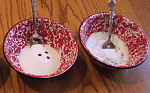 - When each color is acceptable to you, put the food coloring away and move the bowls near to where the cookies will be decorated.