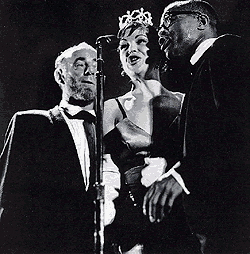 Dave Lambert, Jon Hendricks and Annie Ross were jazz fans, first and foremost. Plus they were great singers. They came together out of a mutual interest in singing jazz. But much of the music they liked best had no words, and they were not content to simply scat (although they did that very well also). Rather than nonsense like “boop shoo-bop, scree-bop sh-bang” as other jazz singers might have sung, Hendricks wrote actual, meaningful words to music that had none, taking jazz solos that had been freely improvised and writing words that matched them, note-for-note. The result was some of the coolest music ever from one of the coolest-looking groups ever! (Not enough singers wear tiaras these days…)